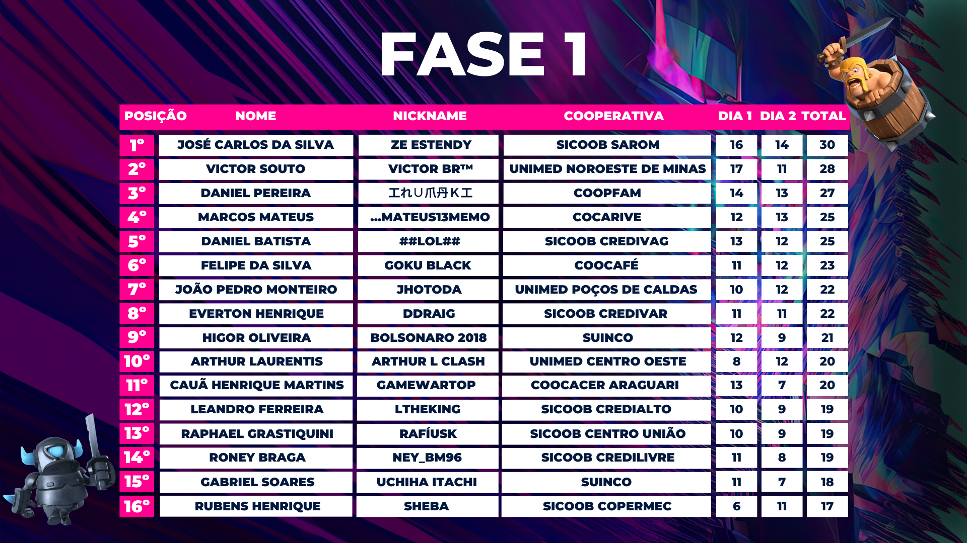 Fase de ranking utilizando sistema do próprio jogadores onde a soma de vitórias define os melhores jogadores, com duração de 1 hora para efetuarem o máximo de jogos possíveis.