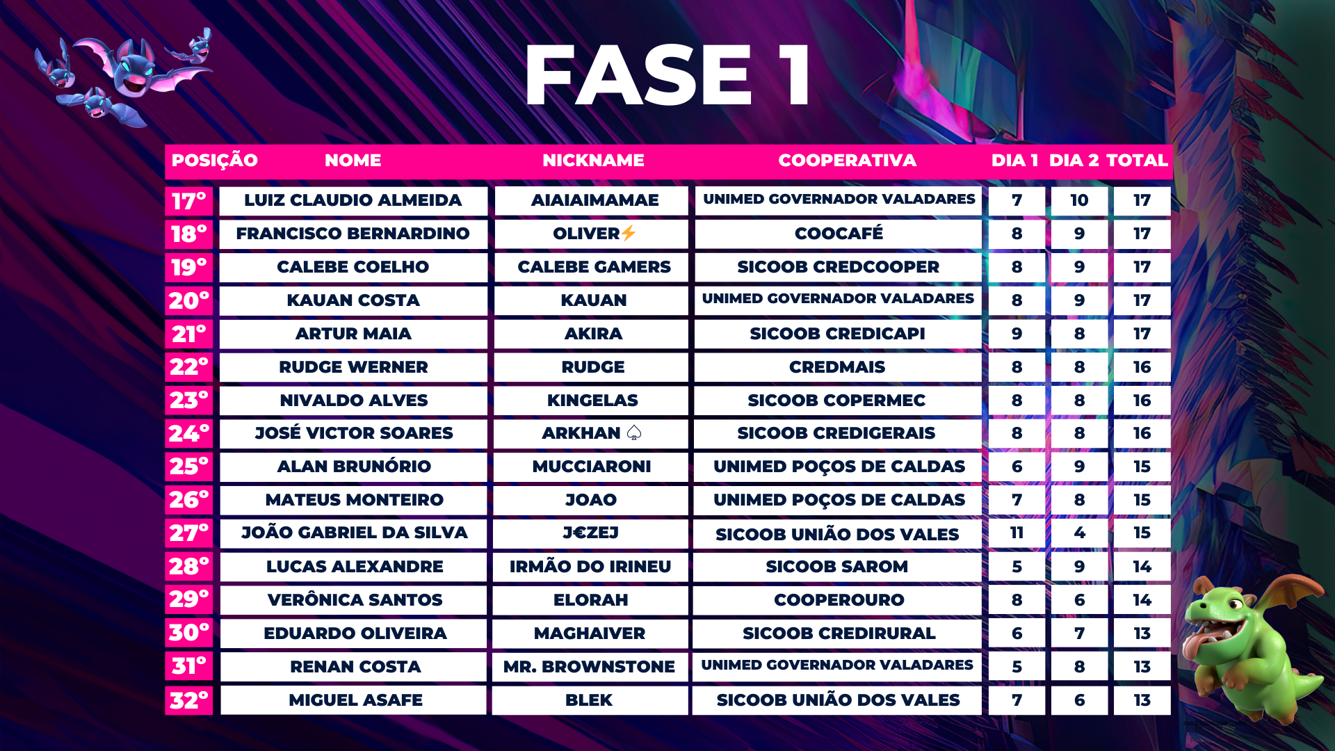 A organização criará o grupo no WhatsApp. Fique atento as informações passadas por lá e não saia do grupo oficial do torneio.